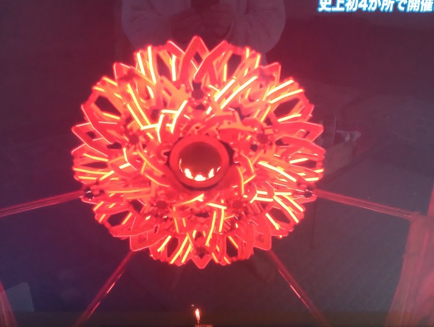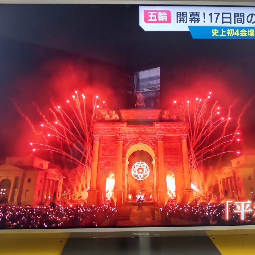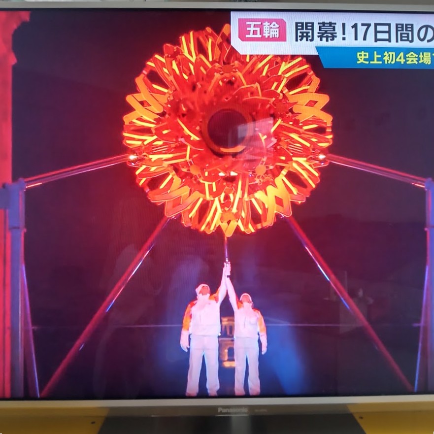 テレビ画面越しですが、2都市で点火されるシーンを・・・